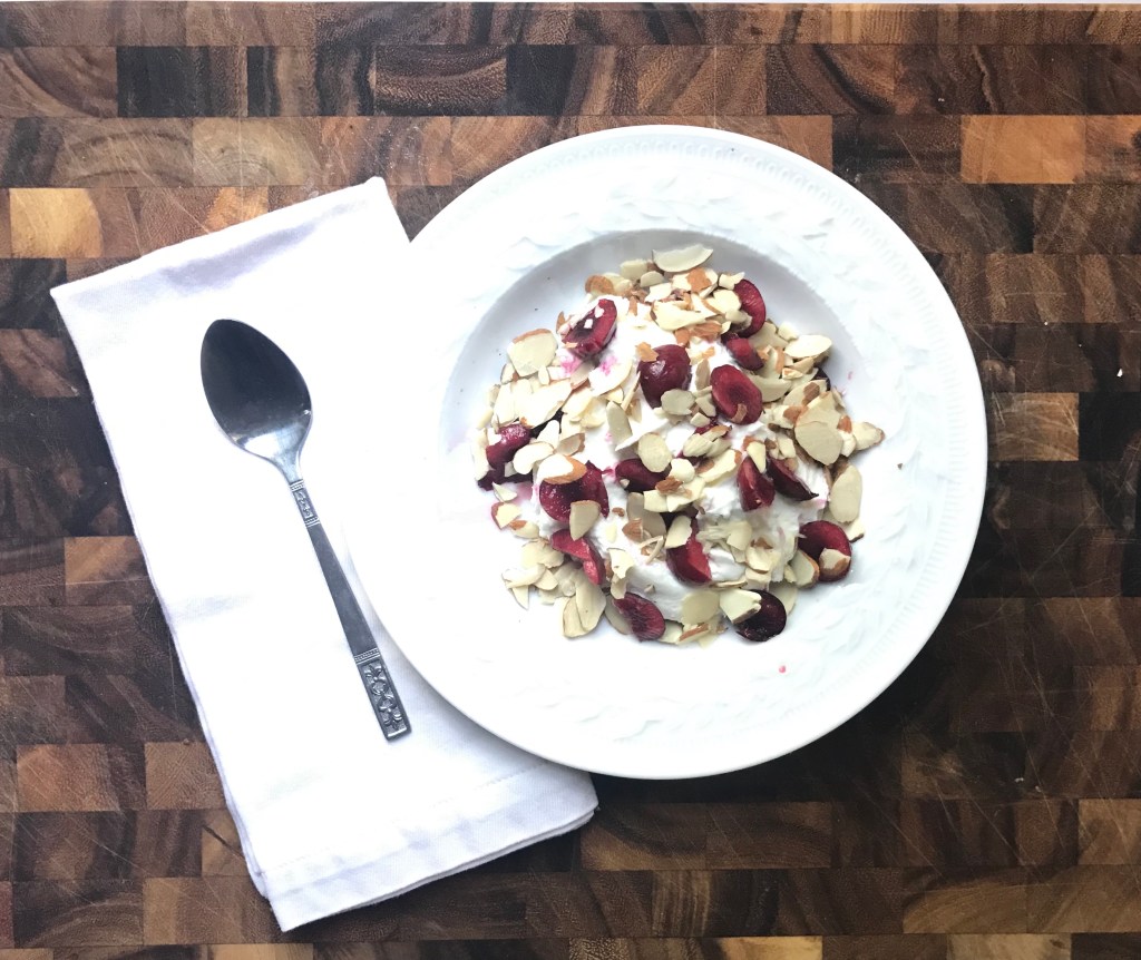 1. Chopped over plain greek yogurt with sliced almonds (drizzle of honey optional)