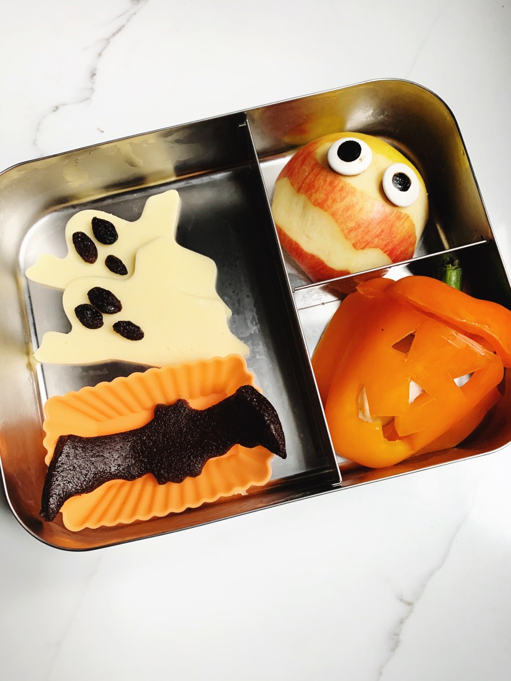 3. Cheese Ghosts, Mummy Apples, Jack’o’Lantern Peppers and my Healthy Brownie Bite Bat