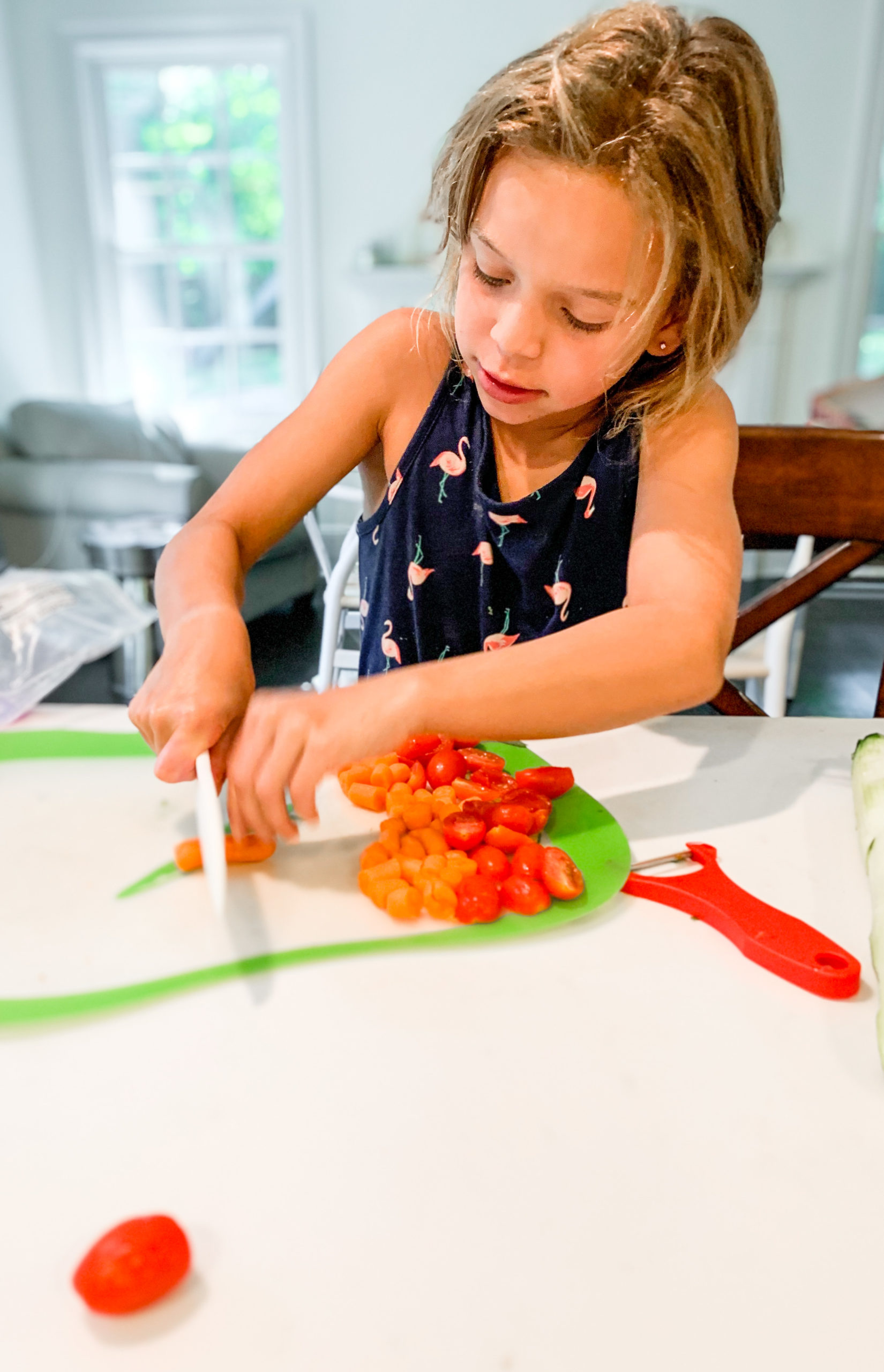 *This is a great way to get your kids to help with dinner prep. We use kids knives and they help chop 🙂