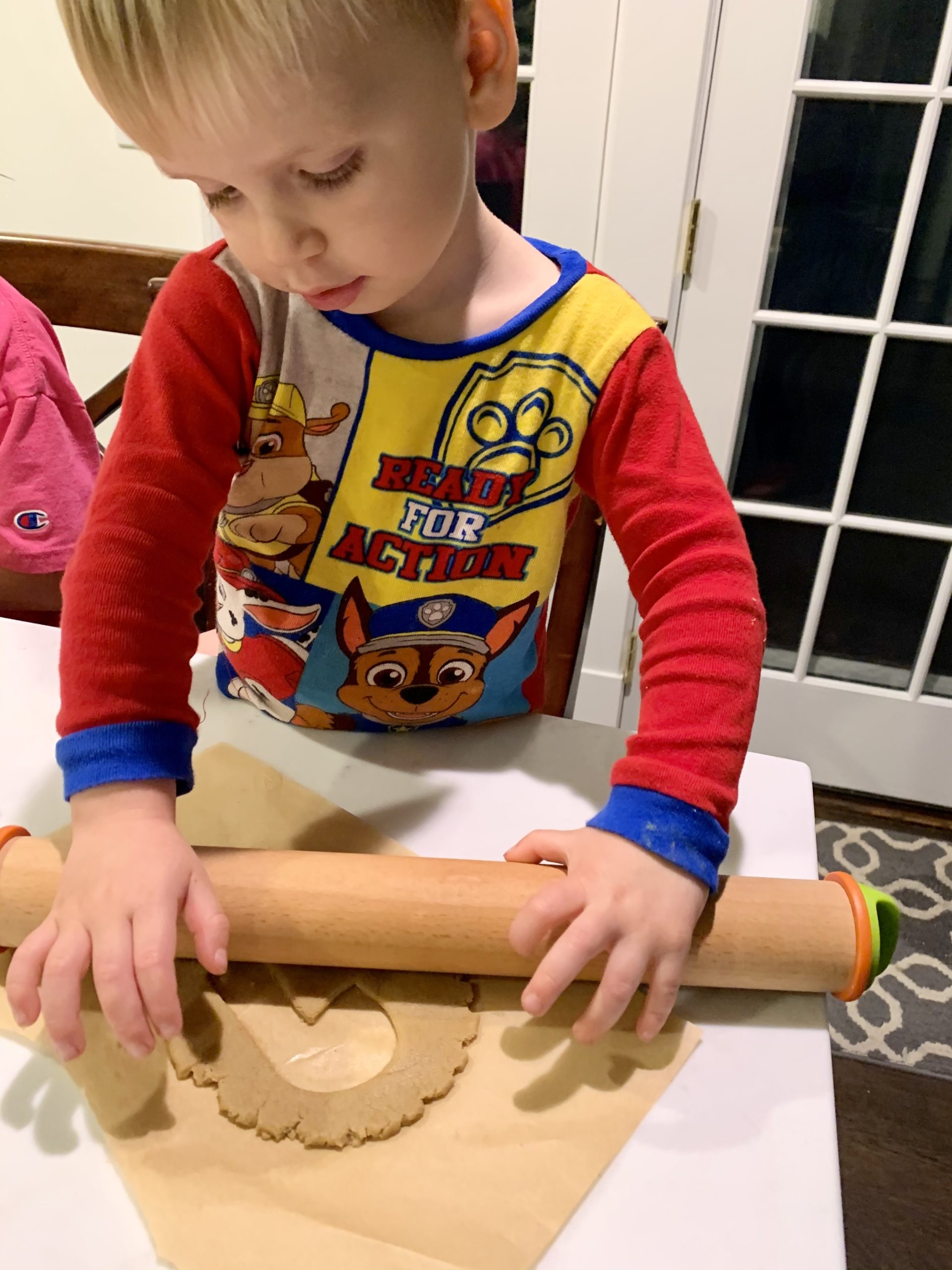 Additionally, instead of just all purpose flour I made them with a blend of all purpose and oat flour. If you are gluten free there is an adaptation to make them with all oat flour. This does have a slightly different taste which is not my kids favorite. I actually like it better (more of a whole wheat graham cracker taste). If you have a gluten free child you could also use a blend of a gluten free 1-1 mix and oat flour. Even with all of these changes I promise you won’t even notice – especially if you put icing and sprinkles on.