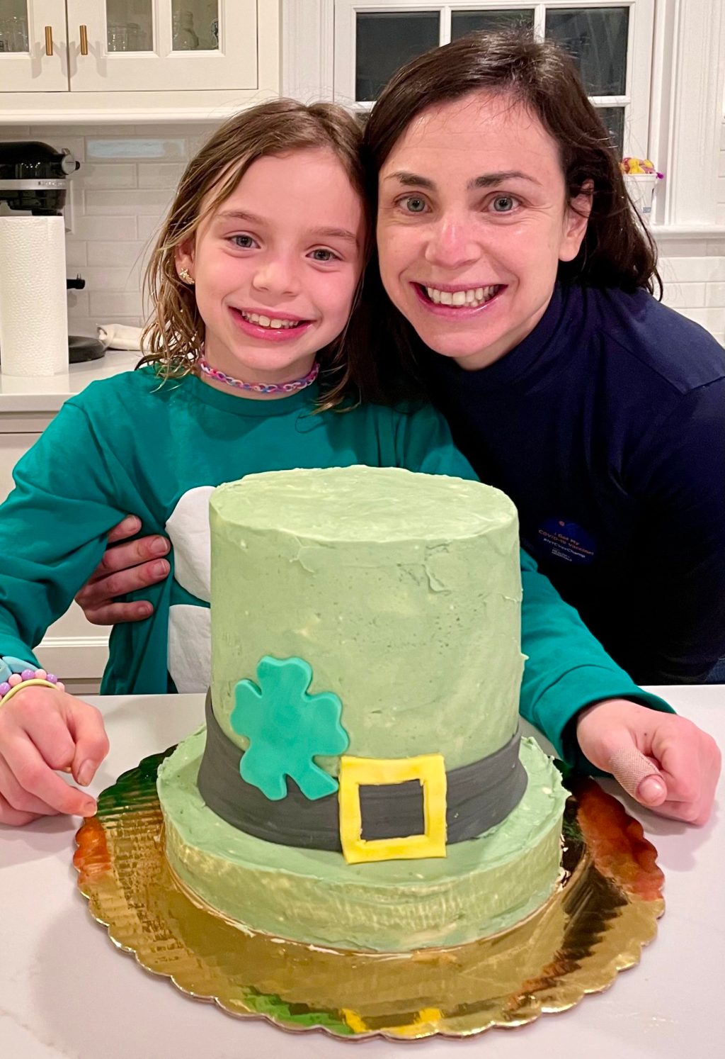 Hi! Hope you had a wonderful St. Patrick’s Day. Savanna was home from school on Monday and Tuesday as the teachers made preparations for them to return to school full time. On her day’s off we decided it would be fun to do a big baking project together for St. Patrick’s Day. We built this Leprechaun Hat Cake with a chocolate and sprinkle filling using my one bowl vanilla cake recipe. We tried to make a rainbow, but the natural dyes did not work as well. Check out a short video here on how we put the Leprechaun Hat Cake together.